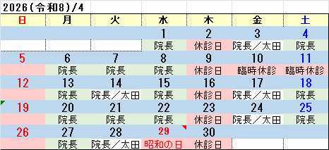 11日(第2土)休診医師の都合により変更になることがあります
