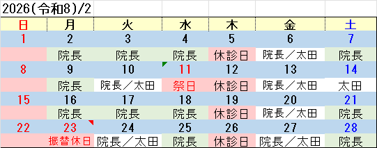 28日(第4金)堀第2土曜、診療医師は次の通りです。